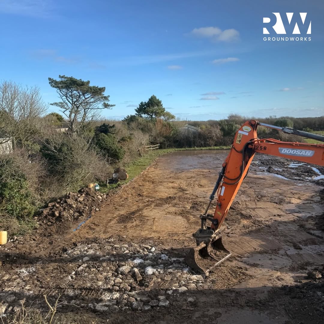 rom one-off patios to 11-house developments, RW Groundworks digs, pours, and builds with our own plant and our own crew on site from day one — so the project you're picturing is the project you get.
